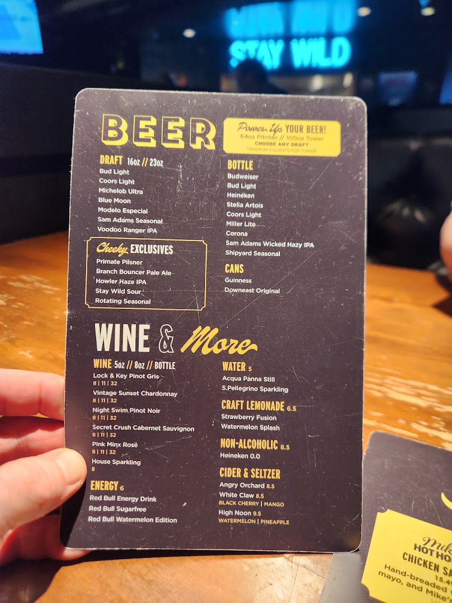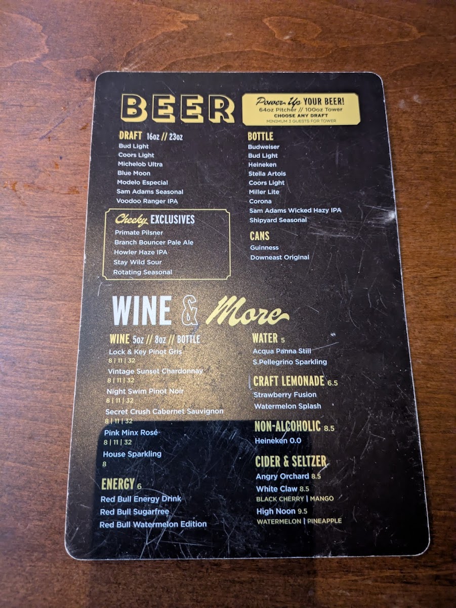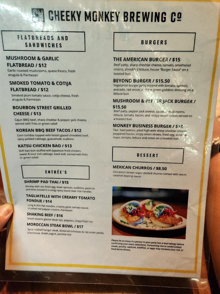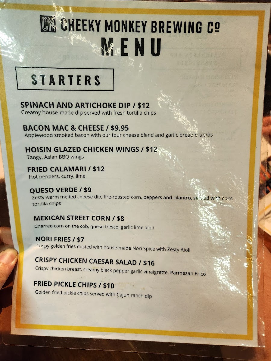 Cheeky Monkey Brewing Company Menu